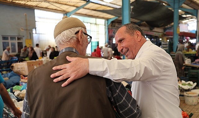 Pazar tezgâhlarını tek tek gezen Başkan Aydın, esnafa hayırlı işler dileyip sohbet etti. Alışveriş yapan hemşehrilerinin hal ve hatırını da soran Aydın, samimi anlara tanıklık etti.