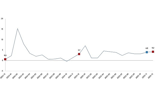Hizmet üretim endeksi (2021=100) 2025 yılı Aralık ayında bir önceki yılın aynı ayına göre %4,2 arttı. Aynı ayda ulaştırma ve depolama hizmetleri %3,5 arttı, konaklama ve yiyecek hizmetleri %5,2 arttı, bilgi ve iletişim hizmetleri %5,0 arttı, gayrimenkul hizmetleri %0,5 azaldı, mesleki, bilimsel ve teknik hizmetler %3,0 arttı, idari ve destek hizmetleri ise %4,6 arttı.