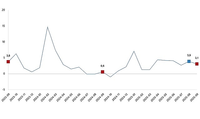 Hizmet üretim endeksi (2021=100) 2025 yılı Eylül ayında bir önceki yılın aynı ayına göre %3,1 arttı. Aynı ayda ulaştırma ve depolama hizmetleri %1,8 azaldı, konaklama ve yiyecek hizmetleri %4,9 arttı, bilgi ve iletişim hizmetleri %17,1 arttı, gayrimenkul hizmetleri %6,2 arttı, mesleki, bilimsel ve teknik hizmetler %1,5 arttı, idari ve destek hizmetleri ise %2,5 arttı.