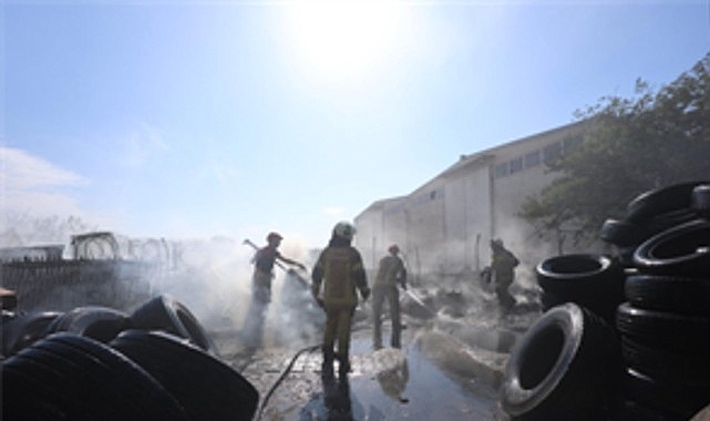 İzmir Büyükşehir Belediyesi İtfaiye ekipleri, İzmir Çanakkale Yolu Helvacı Kavşağında bulunan bir lastik deposunun çevresinde çıkan yangına müdahale etti. Yangın, işletmeye sıçramadan kontrol altına alındı.