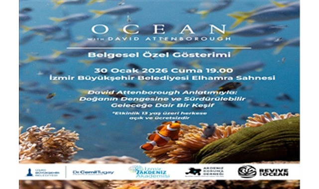 İzmir Büyükşehir Belediyesi, İzmir Akdeniz Akademisi ve Akdeniz Koruma Derneği iş birliğiyle, David Attenborough’nun anlatımıyla hazırlanan Ocean with David Attenborough belgeselini 30 Ocak 2026’da saat 19.00’da Elhamra Sahnesi’nde izleyicilerle buluşturuyor.