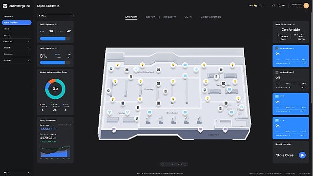 Samsung’un SmartThings Pro ürünü bina yönetiminde net çözümler sunuyor. Platform, bilinen SmartThings deneyimini ticari alanlara genişleterek tesis ve site yöneticilerinin birden fazla binada iklim sistemlerini ve diğer bağlı cihazları uzaktan izlemesine ve kontrol etmesine imkan tanıyor.