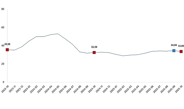 Tarım-GFE’de (2020=100), 2025 yılı Ekim ayında bir önceki aya göre %2,04 artış, bir önceki yılın Aralık ayına göre %29,06 artış, bir önceki yılın aynı ayına göre %33,66 artış ve on iki aylık ortalamalara göre %32,30 artış gerçekleşti.