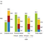 Kadın personelde ise en yüksek pay yine lisans mezunlarına ait olup, bu oran %68,7’dir. Kadın çalışanlarda yüksek lisans mezunları %11,2 ile ikinci sırada yer almakta, bunu lise ve dengi (%7,6), meslek yüksekokulu (%6,3), doktora veya eşdeğeri (%3,2) ve diğer (%3,0) takip etmektedir.